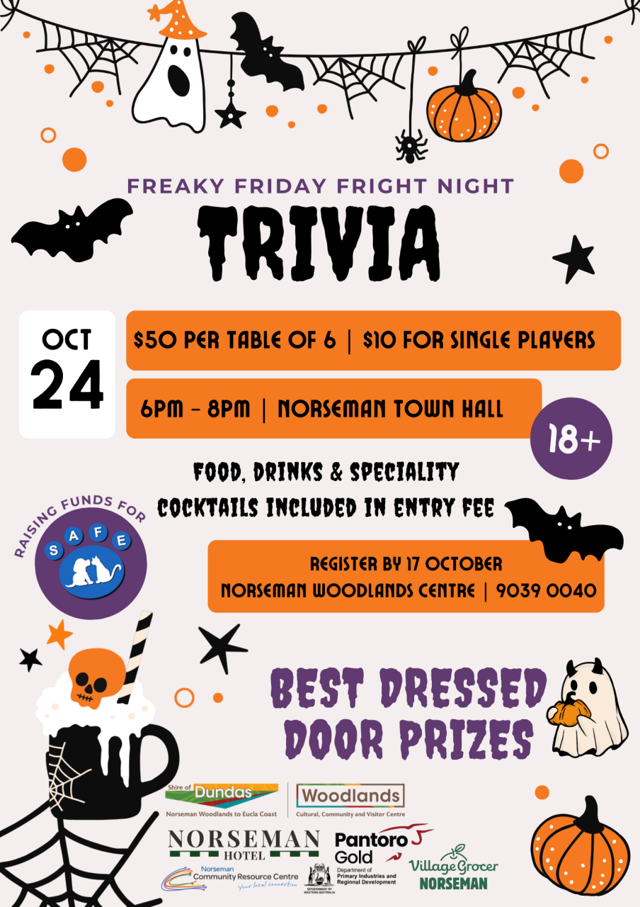 We will be hosting a Halloween Trivia Night to raise funds for SAFE Esperance.